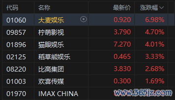 影视股涨幅居前,大麦娱乐涨超6%。据灯塔专业版,截至1月9日,2026年1月总票房(含预售)已突破10亿。光大证券指出,随着《飞驰人生3》率先定档,公众对春节档的关注与讨论持续升温。从目前已释出的片单来看,2026年春节档整体热度或难以达到2025年同期水平,但凭借多位具有市场号召力的导演及主演阵容,26年春节档票房表现仍具备一定保障。